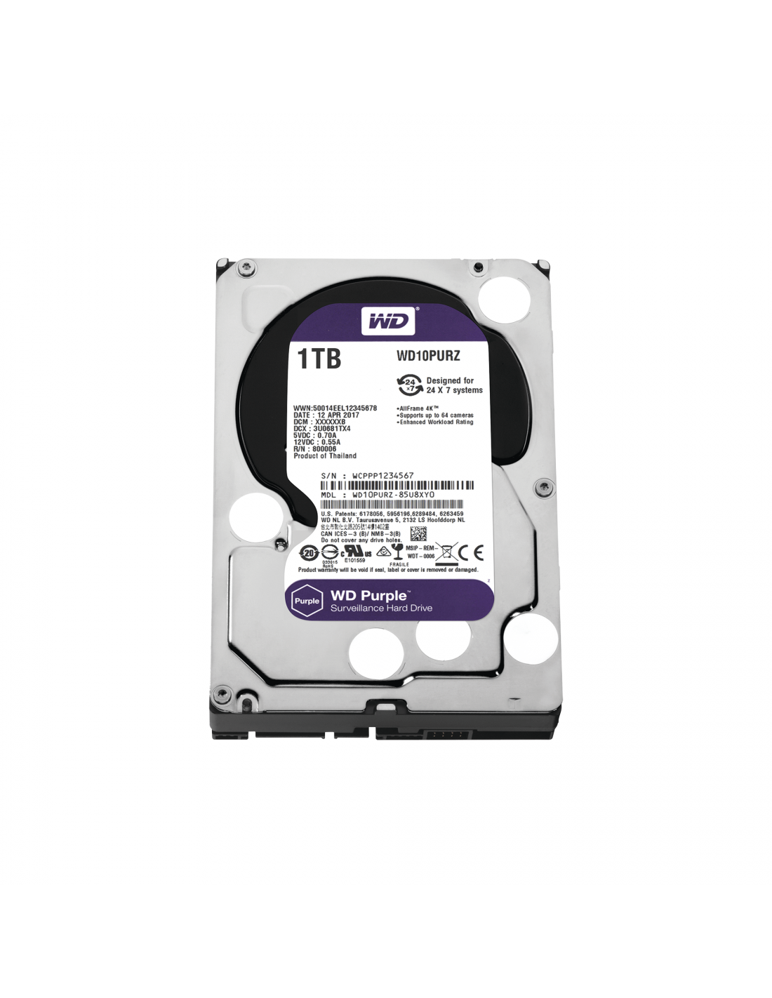 Fabricado por un líder mundial en la industria del almacenamiento, WD Purple se ha ideado para la reproducción de video de alta calidad cuando más lo necesita.