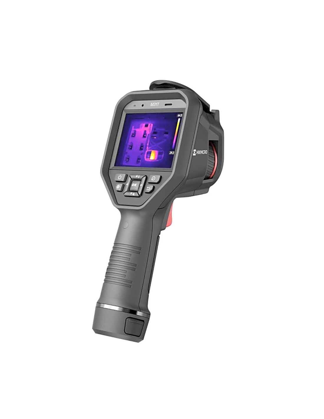 - Paletas de Color: Blanco Caliente, Negro Caliente, Arcoíris, Ironbow, Rojo Caliente, Fusión, Lluvia, Azul Rojo